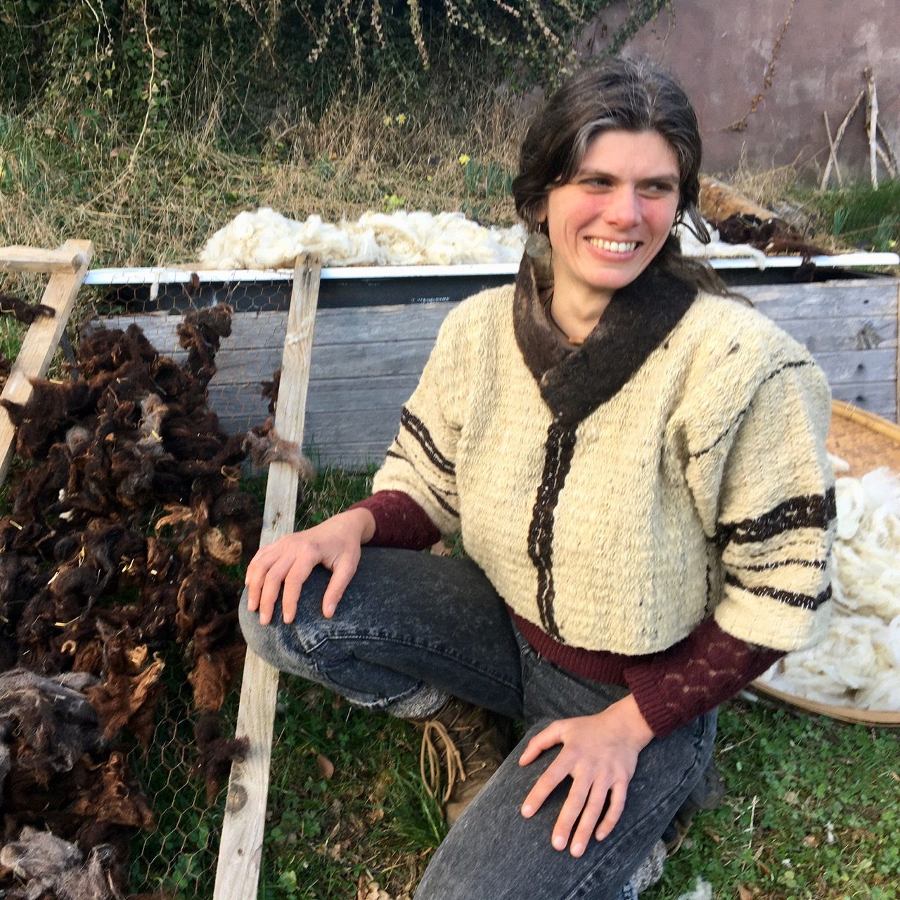 L'ensemble de nos lainages sont fabriquées à partir de laine de mouton que nous transformons à la main (nettoyage, cardage, filage au rouet, feutrage et tissage). Les laines proviennent d'élevages paysans en montagne vosgienne (notre élevage et d'ami·e·s paysan·ne·s dans un rayon de 30 kms de l'atelier). Chaque modèle est unique. Une création par Manon Kern et Jim Petit.